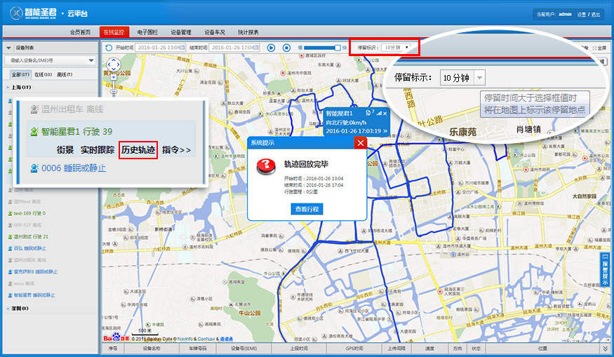 选择停留标识时间,则可显示此时间段内车辆停留的地点